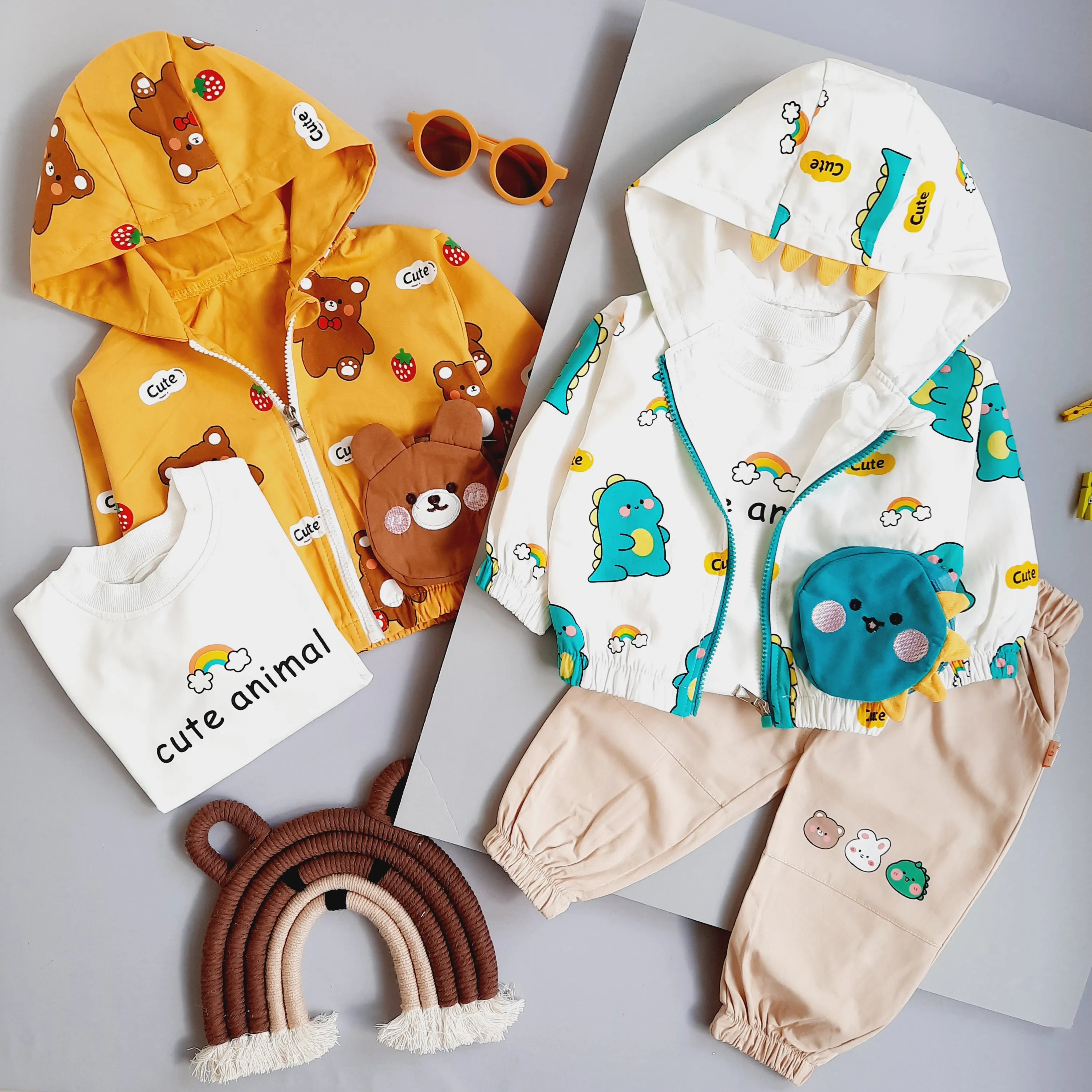 لباس بچه گانه سه تیکه طرح دایناسور و طرح تدی