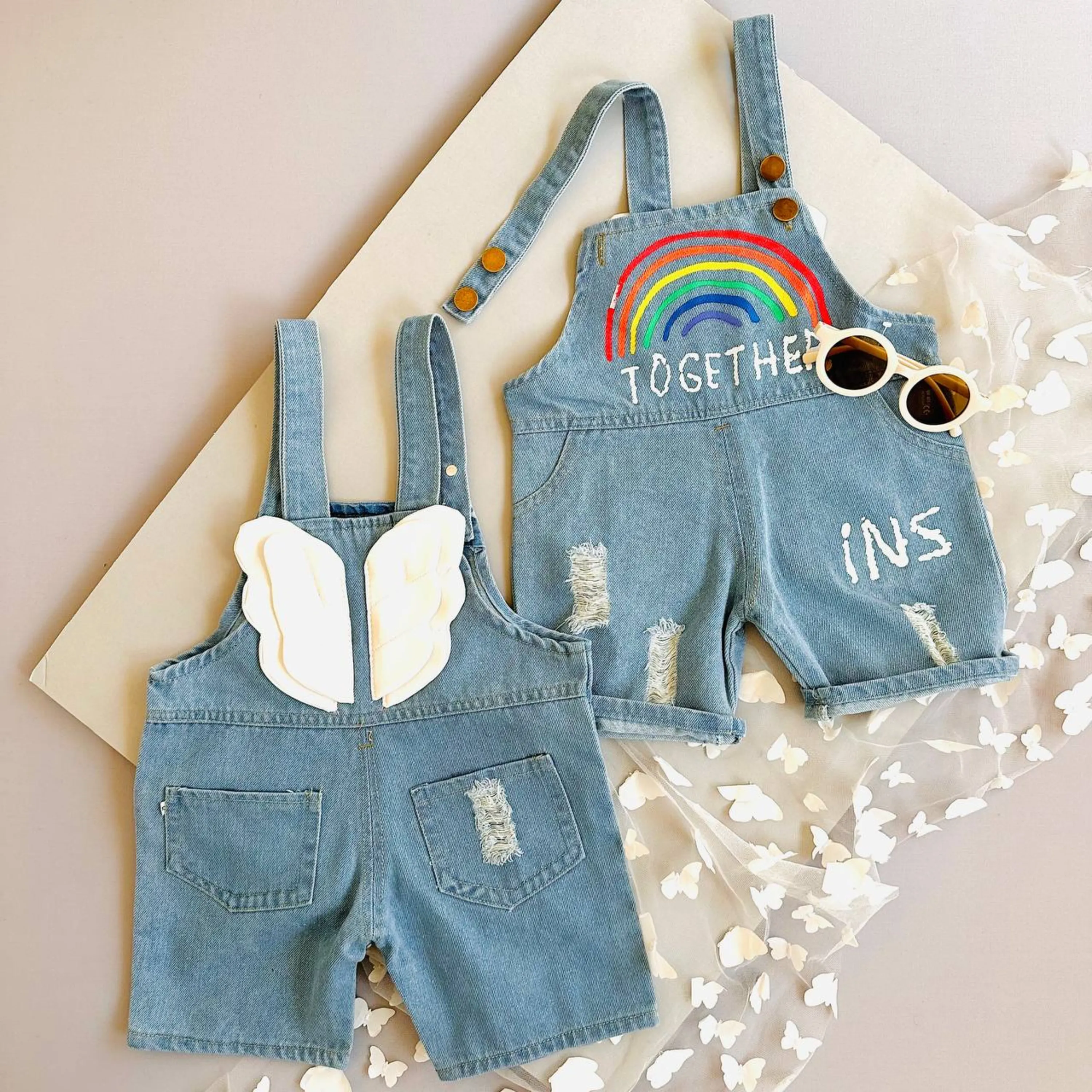 بیلر جین رنگین کمان بالدار کوتاه تابستانی