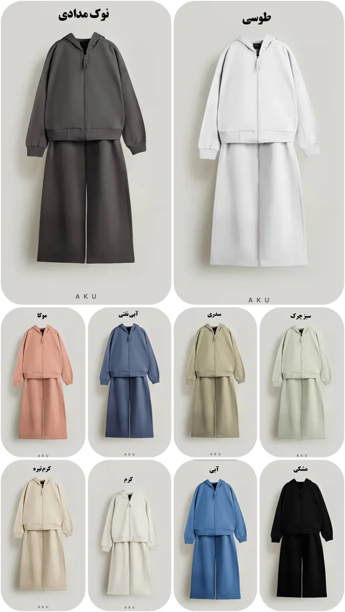 سایز 9 : طول سویشرت 51 / عرض سینه 45 / طول شلوار 84 سانتیمتر
