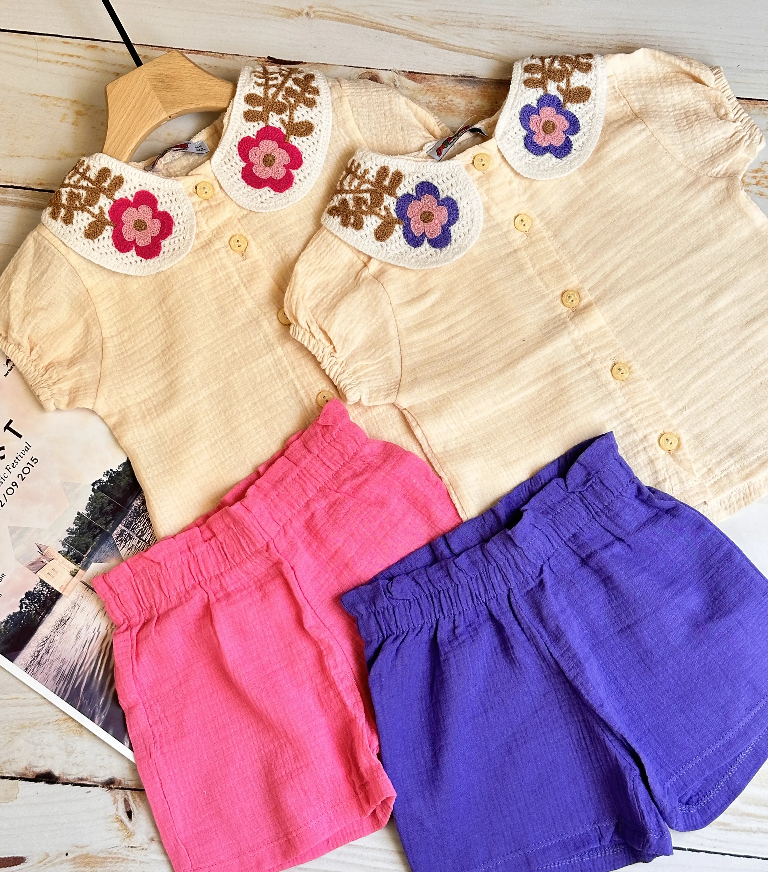 لباس بچه گانه ست تیشرت و شلوارک طرح گل از برند ترک